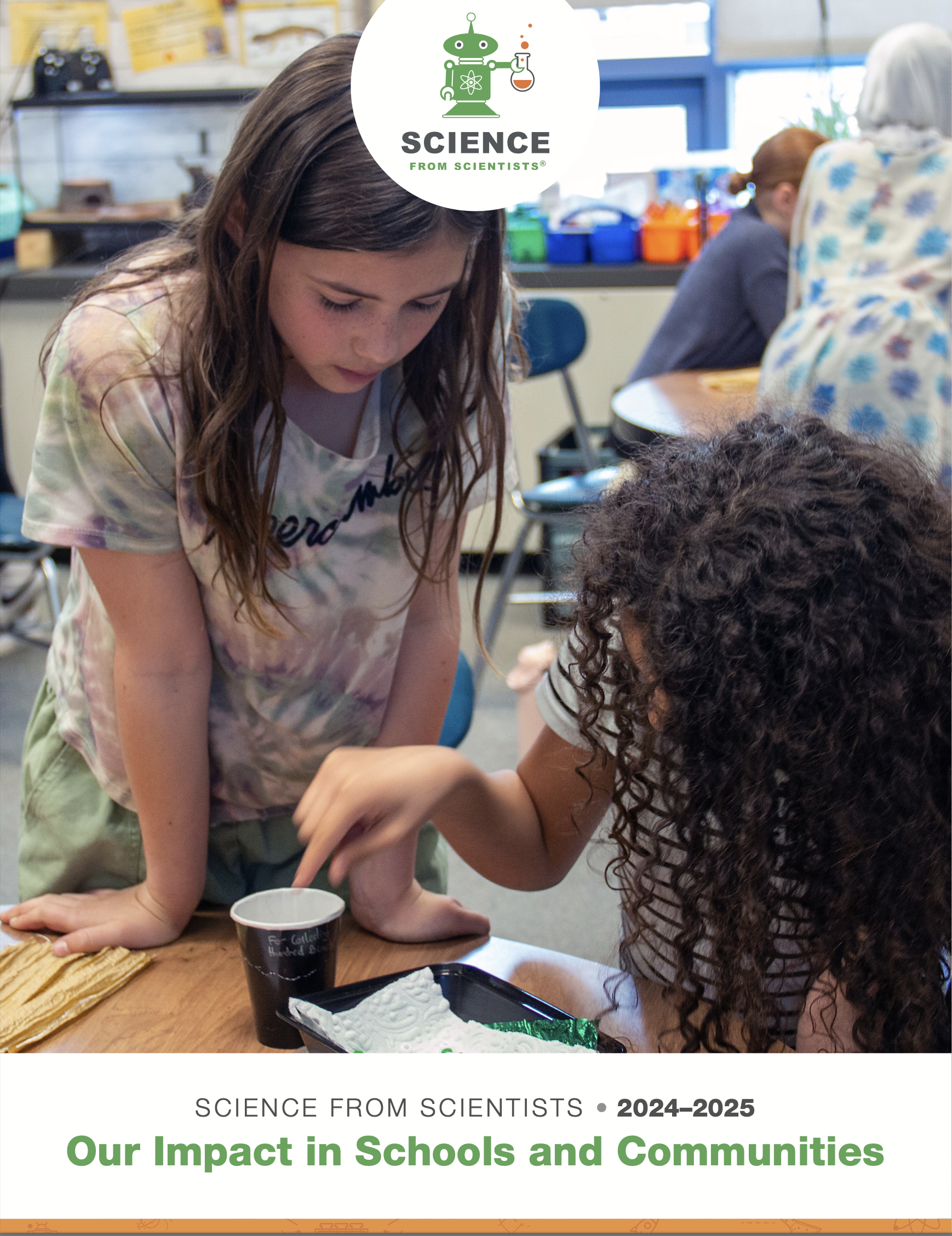 For over 23 years, Science from Scientists (SciSci) has revolutionized STEM education through its In-School Module- Based (ISMB) STEM Enrichment Program, bringing real-life scientists into classrooms to make STEM engaging, relatable, and accessible. During the 2024-2025 academic year, SciSci impacted over 10,600 students across 84 schools in Massachusetts, Minnesota, and California.